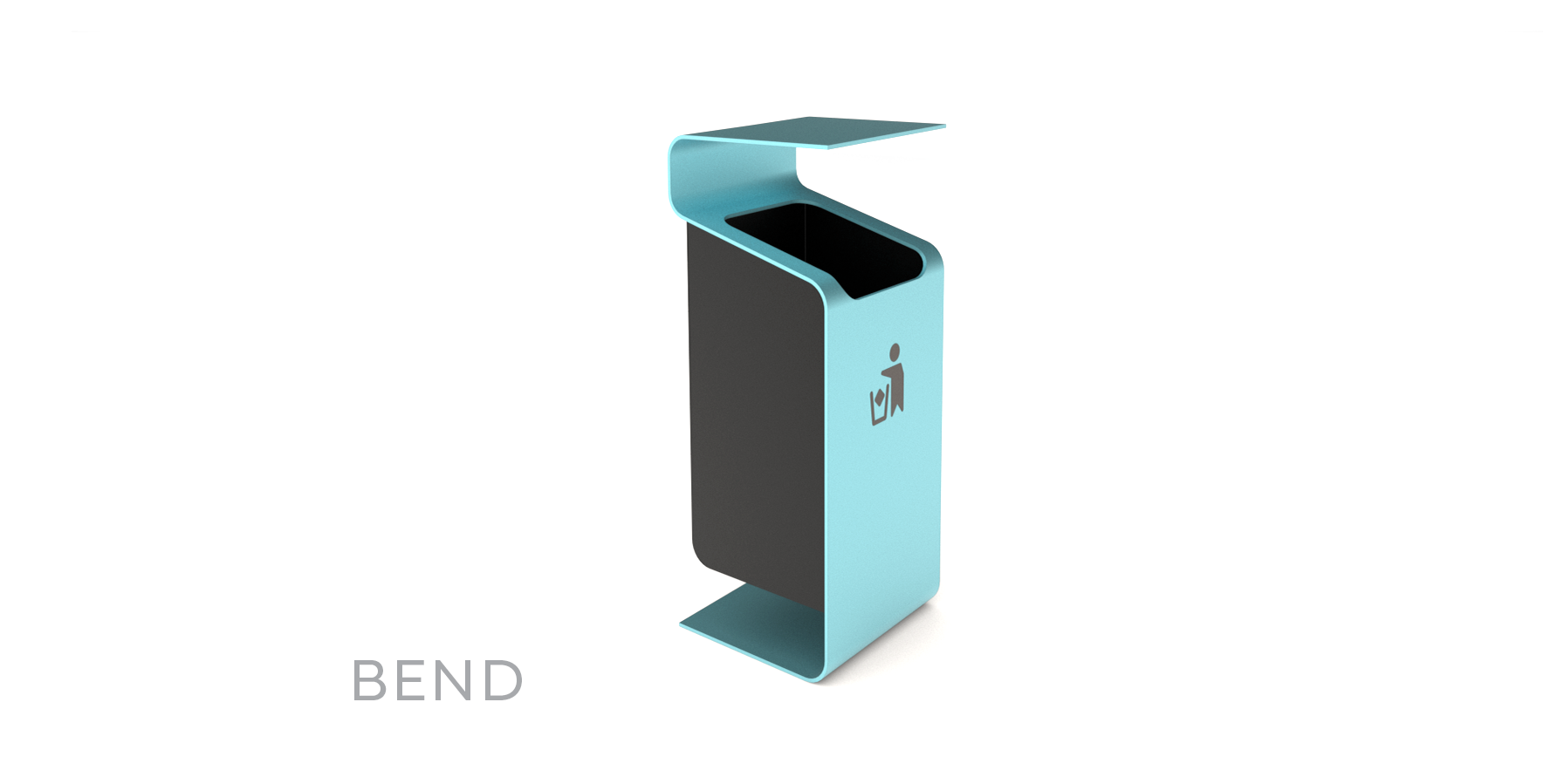 Odpadkový kôš BEND je elegantným prvkom na doplnenie mestského mobiliára. Výsuvný modul sa uvoľňuje zo zadnej strany. Oceľový plech ohnutý do elegantného tvaru tvorí zhora striešku a zdola plochu na ukotvenie koša.