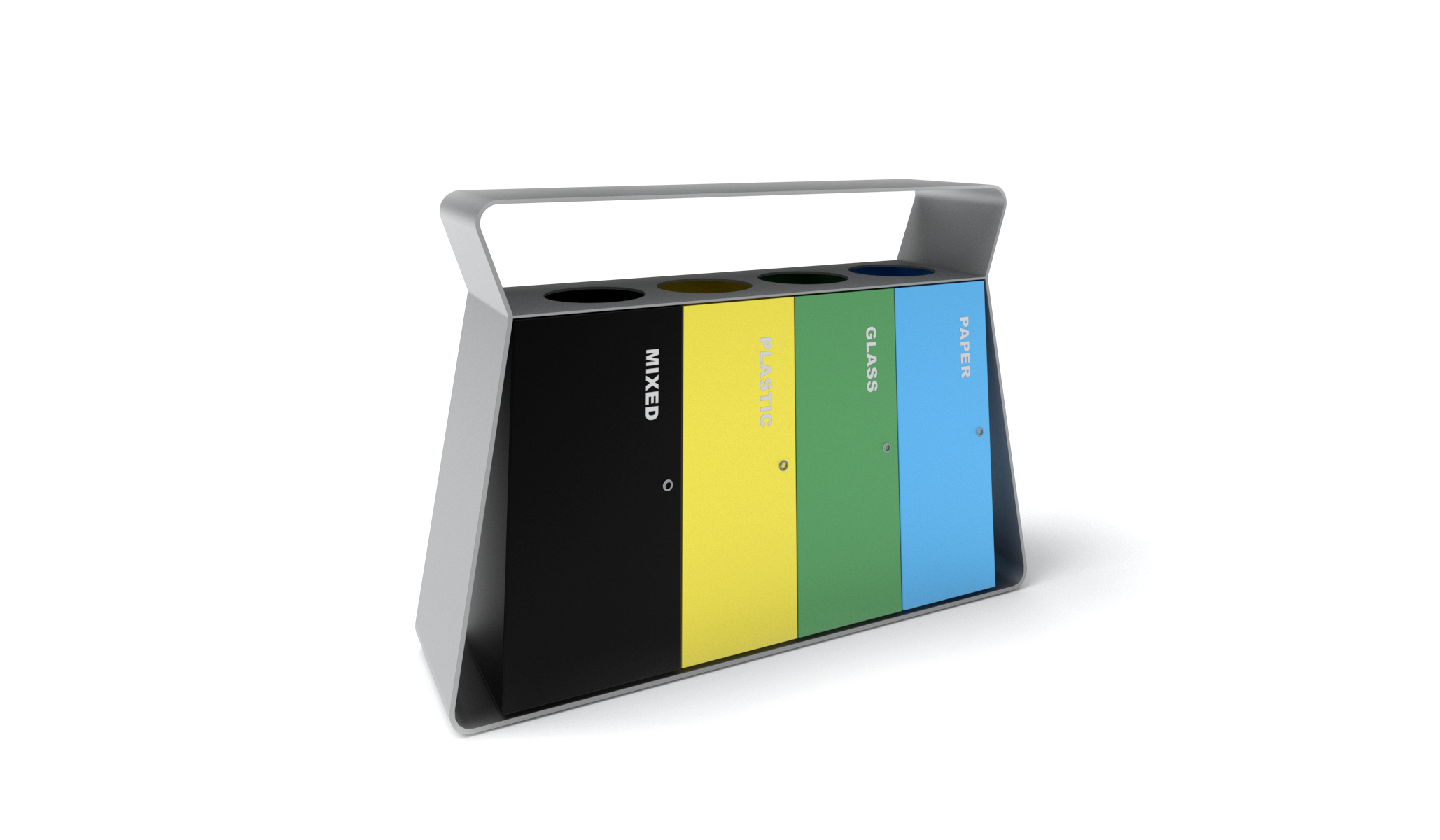Odpadkový kôš TAPER inšpirovaný tvarom písmena T. Jednoduchá línia prechádza celým výrobkom. Výrobok je určiť pre triedený odpad. Celková konštrukcia zaisťuje dostatočnú stabilitu. Strieška koša chráni obsah pred dažďom. Farby košov aj popisky uľahčujú orientáciu pri triedení.