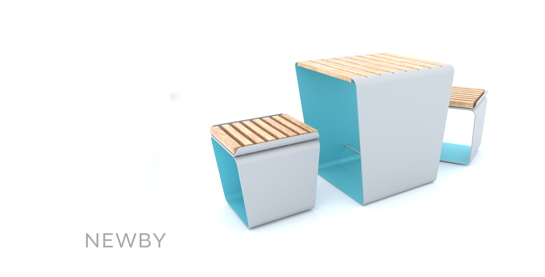 Set otočných sedadiel a jedného stola NEWBY je ideálnym riešením pre miesto na rýchlu desiatu; na posedenie na ihrisku alebo na diaľničnom odpočívadle. Set stola a sedadiel vychádza z tvaru kelímka a potrieb rýchleho občerstvenia.
